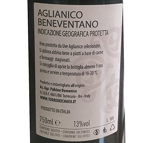 Aglianico del Beneventano IGP | Torre dei Chiusi | Confezione da 12 Bottiglie da 75 Cl | Vino Rosso Italiano | Campania